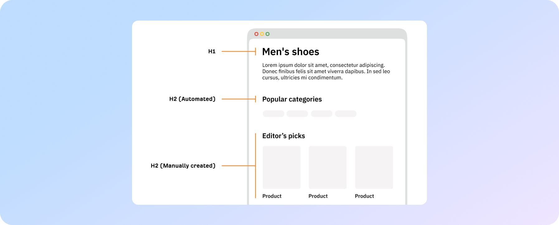 Вони є областю сайту, де ви часто зніматимете "вершки" та "золоту середину" пошукових запитів — менш специфічні запити з великими обʼємами, за якими більшість клієнтів хочуть ранжуватись.