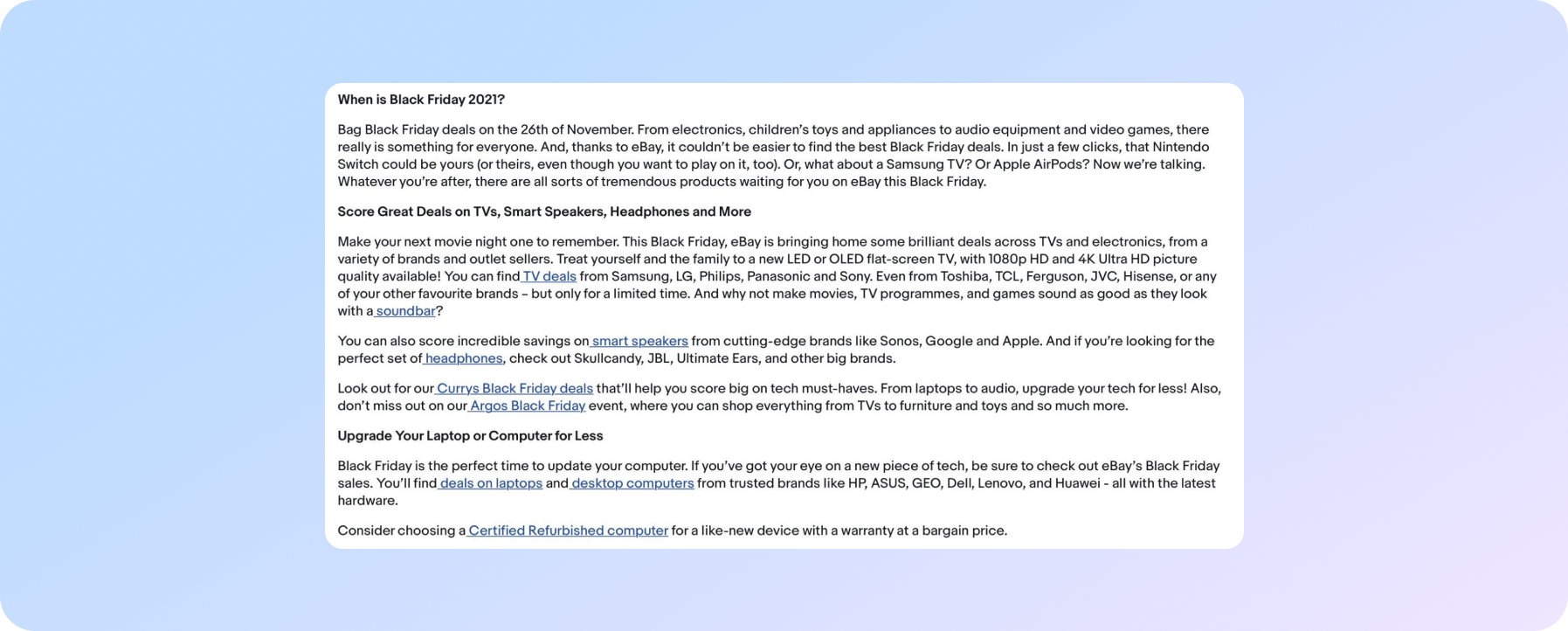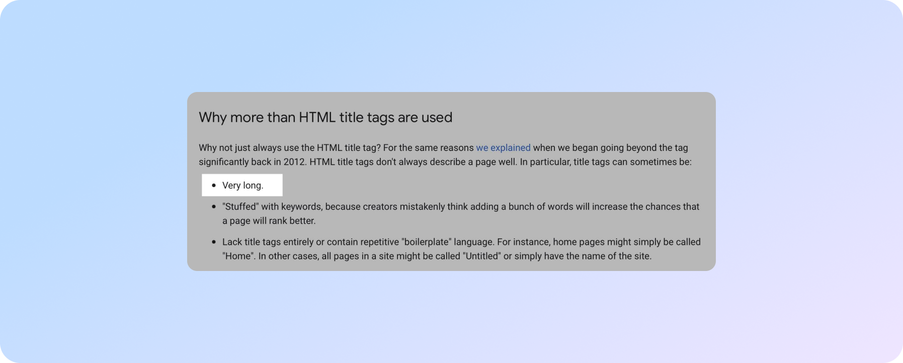 "Наші алгоритми іноді заплутуються в спробах зʼясувати наміри сторінки, коли вони мають список продуктів зверху і по суті гігантську статтю знизу".