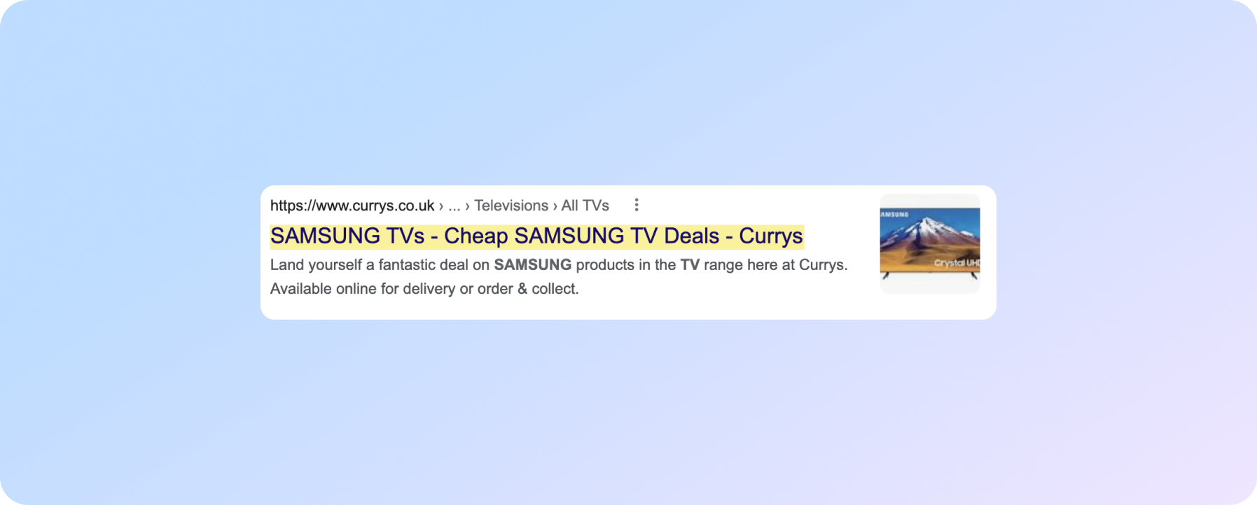 Google показує хлібні крихти в SERP. Ось приклад як Google робить це для Currys в Великобританії.