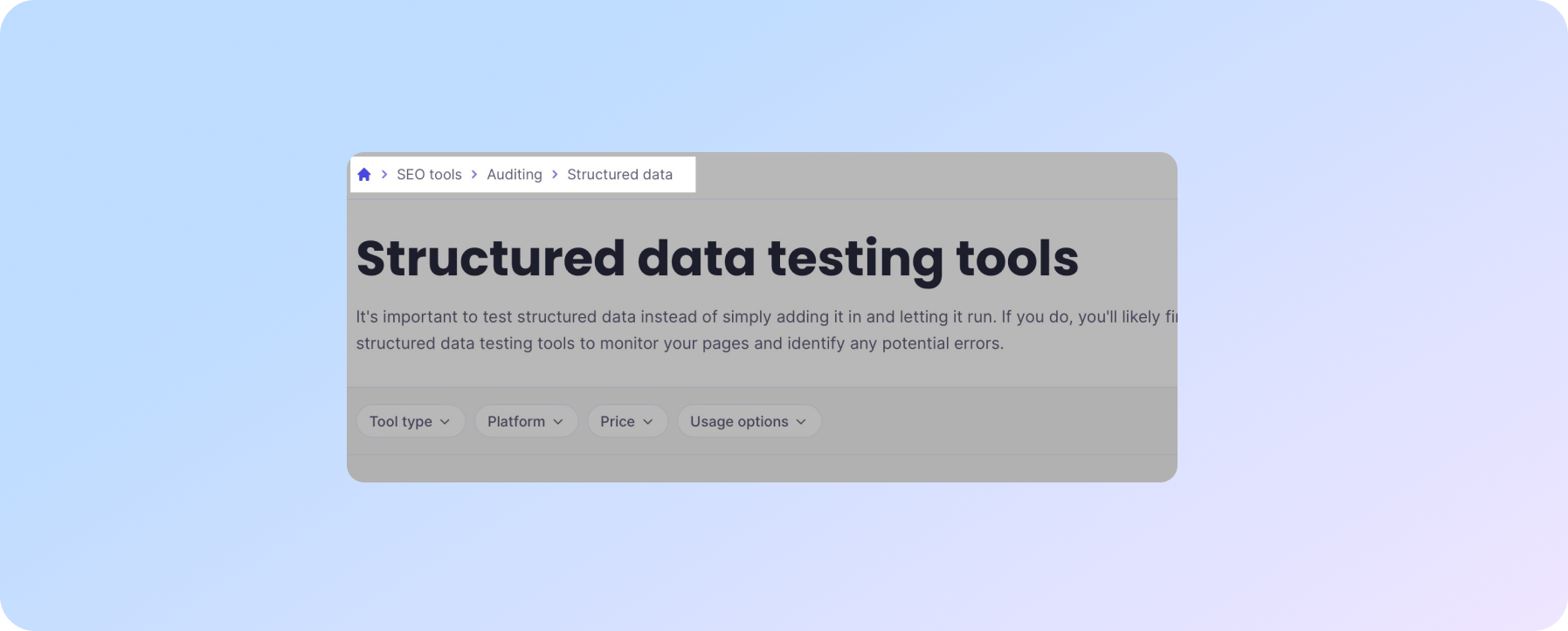 Впорядкування ваших категорій у логічну ієрархію призводить до того, що ваш сайт правильно розміщає хлібні крихти; ось приклад на ресурсі SEO Toolbelt: