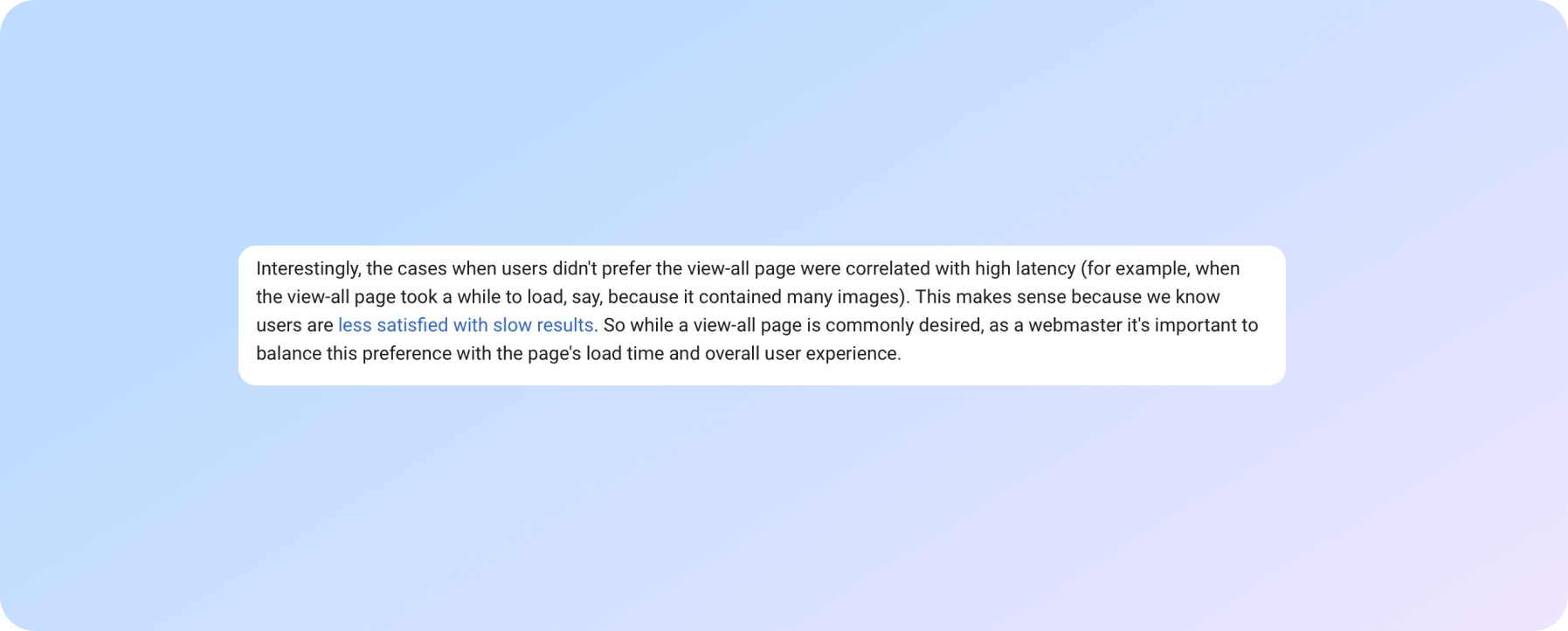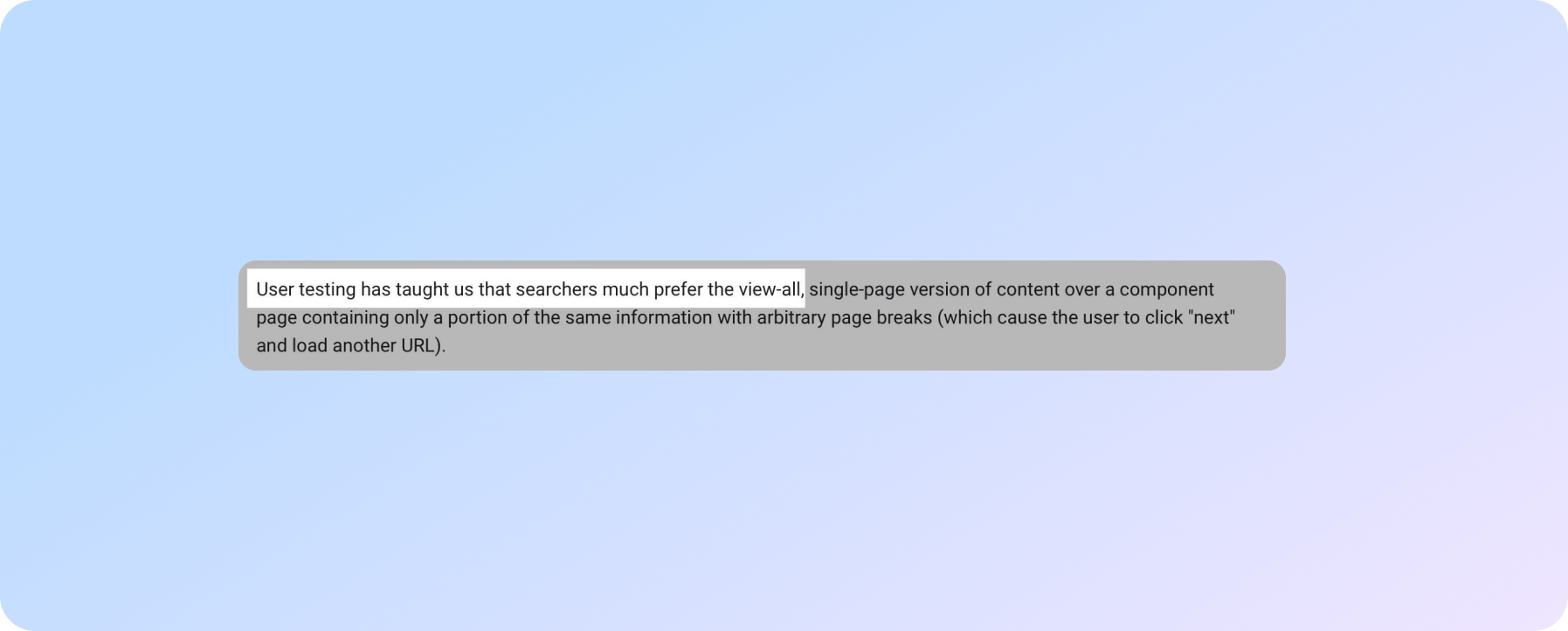 "Я не кажу, що весь цей текст внизу вашої сторінки поганий, але, можливо, 90%, 95% цього тексту не потрібно. Але деяку кількість тексту корисно мати на сторінці, щоб ми могли зрозуміти, про що ця сторінка".