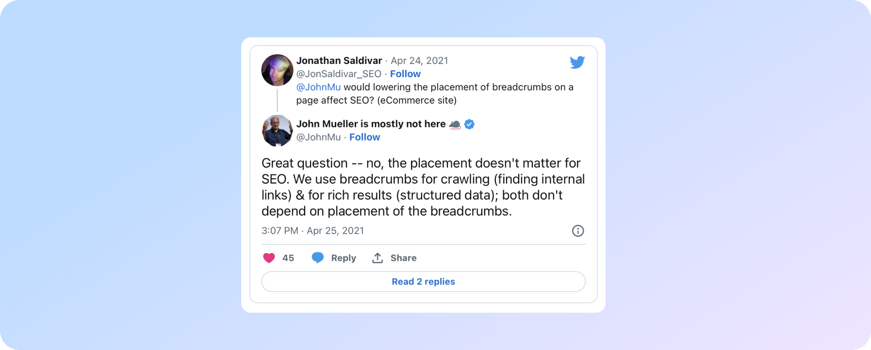 Це допомагає Google зрозуміти структуру сайту, як підтвердив Джон.