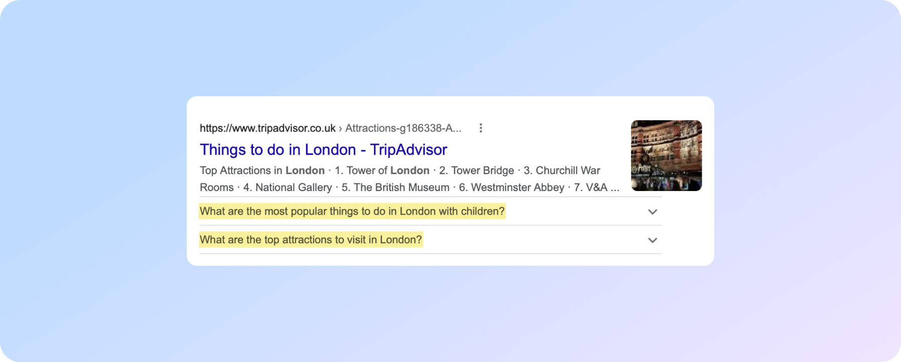 Trip Advisor використовує показ FAQ в пошуковій видачі.
