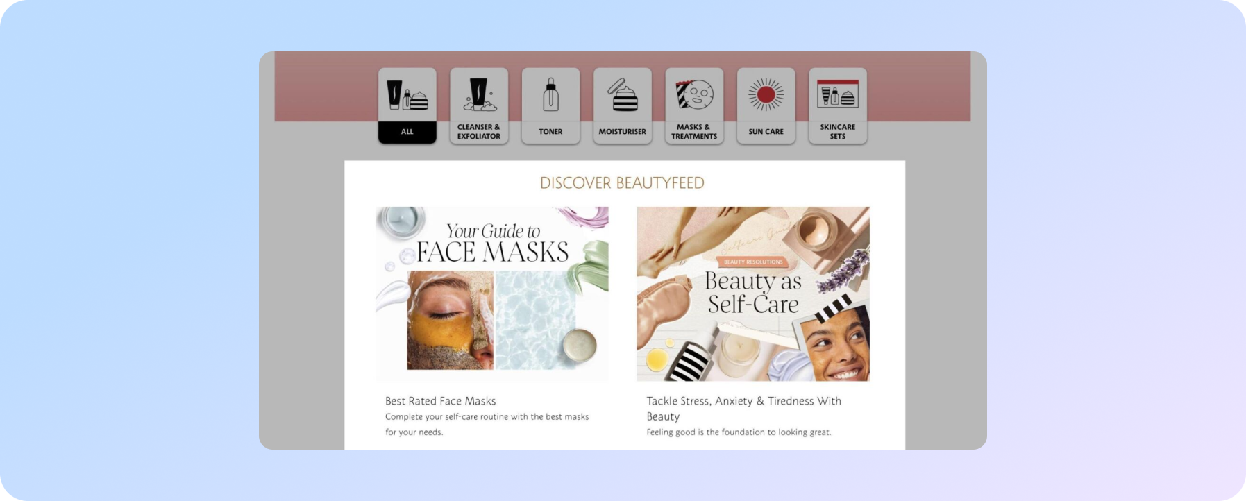 Наприклад, Sephora. Їх лістінги категорій мають посилання на статті, щоб допомогти користувачам вибрати продукт.