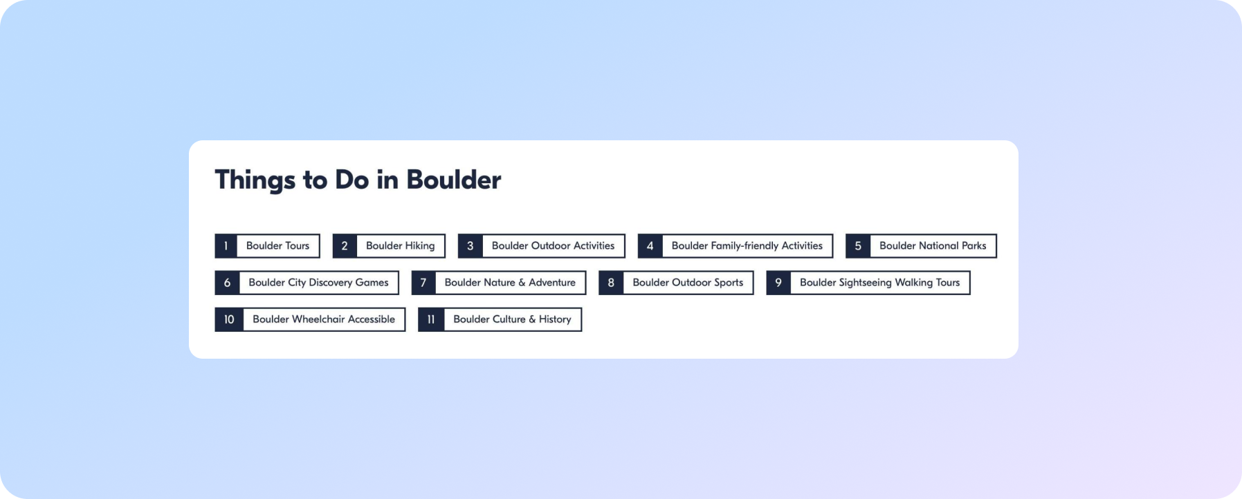 На прикладі сторінки Боулдера на GetYourGuide: вона також веде на інші популярні міста: