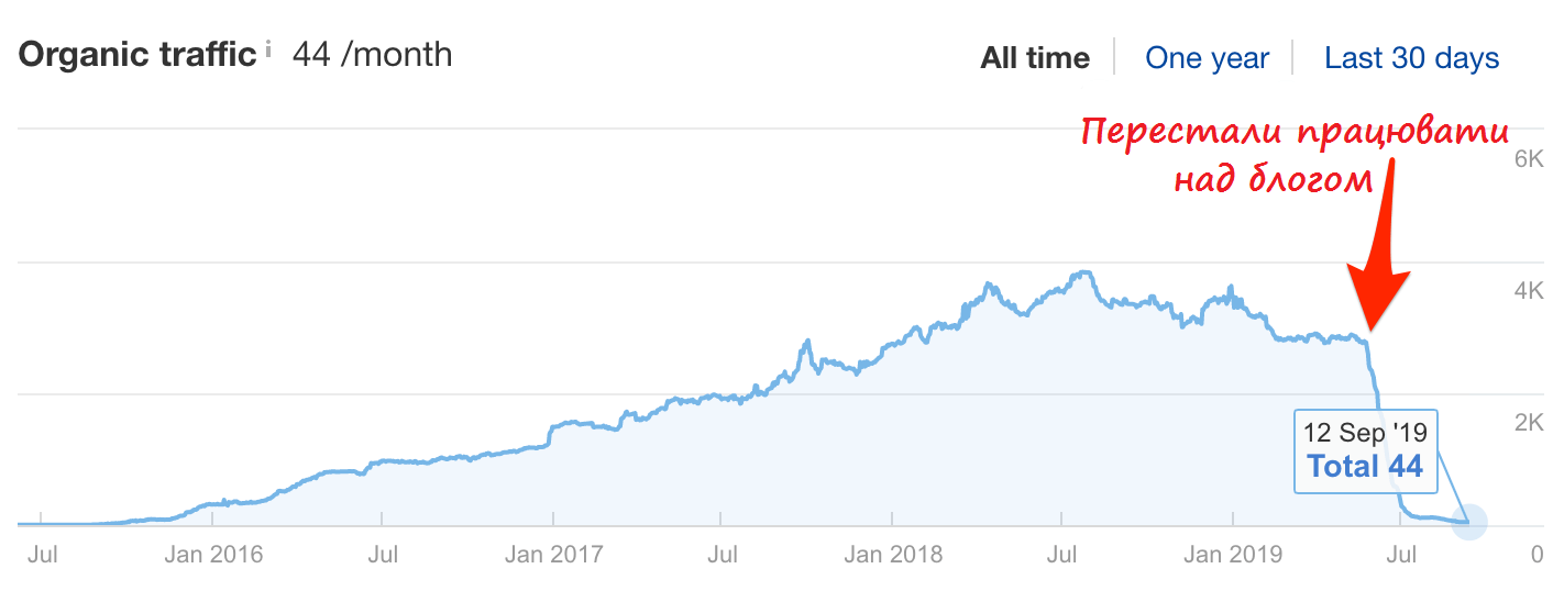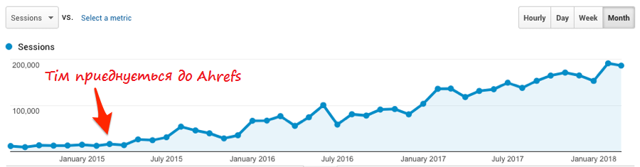 Зараз я працюю в Ahrefs, и наш блог зріс до 270 000 відвідувачів на місяць за декілька років.