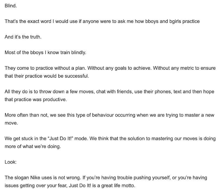 Це і була моя основна стратегія під час ведення блогу з брейк-дансу: