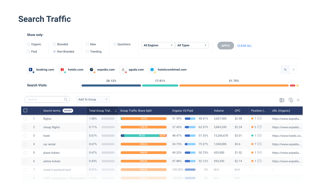 - скільки всього запитів із пошуку використовують конкуренти;