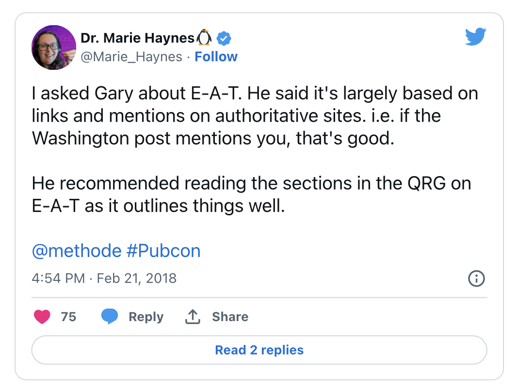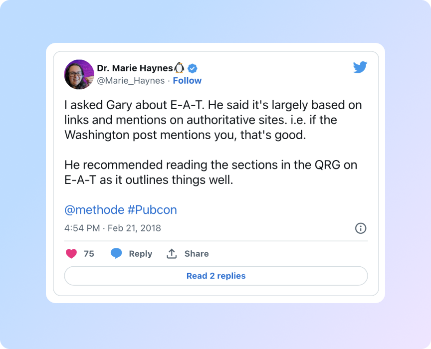 Один із способів, за яким пошукова система може оцінити інформацію — це посилання на сайт. Зрештою, Гарі Іллес підтвердив, що посилання та згадки були суттєвими для оригінальної концепції E-A-T. Це, ймовірно, не змінилося з введенням досвіду.