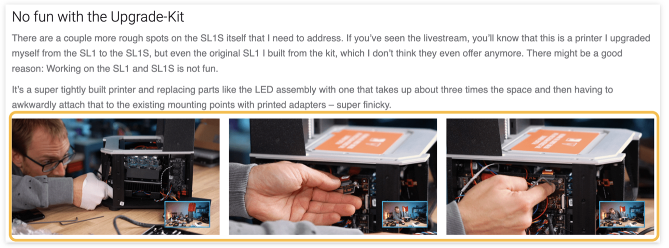 Ось приклад. Томас Санладерер широко відомий в індустрії 3D-друку своїми оглядами продукції. Якби він перестав робити практичні відгуки, він став би менш надійним джерелом інформації про продукт. І це було б через відсутність власного досвіду роботи з продуктом.