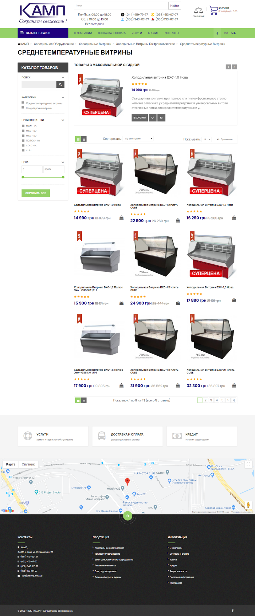 * Приклад сайту, де на сторінці категорії є фільтри, сортування, переваги, посилання на сторінку з інформацією про доставку і кредит, переваги, акційний блок і карта.
