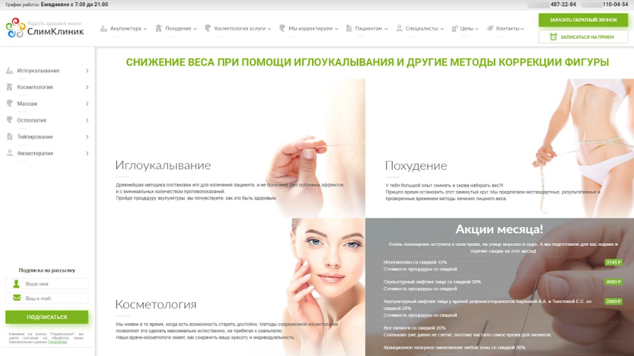 Наступний етап. Ви звертаєтеся в компанію, яка спеціалізується на SEO-просуванні, а вам кажуть, що так не піде. Головна сторінка не дає повної відповіді для користувача, адже він не бачить на ній нічого, крім фото, кнопки і номера телефона. І ви переробляєте сайт, щоб він ріс у пошуковій видачі.