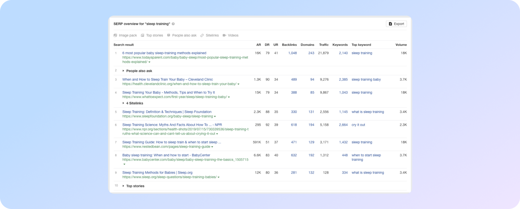 Щоб визначити, що користувачі шукають, проскрольте вниз, щоб переглянути SERP огляд ключових слів в Ahrefs Keywords Explorer.
