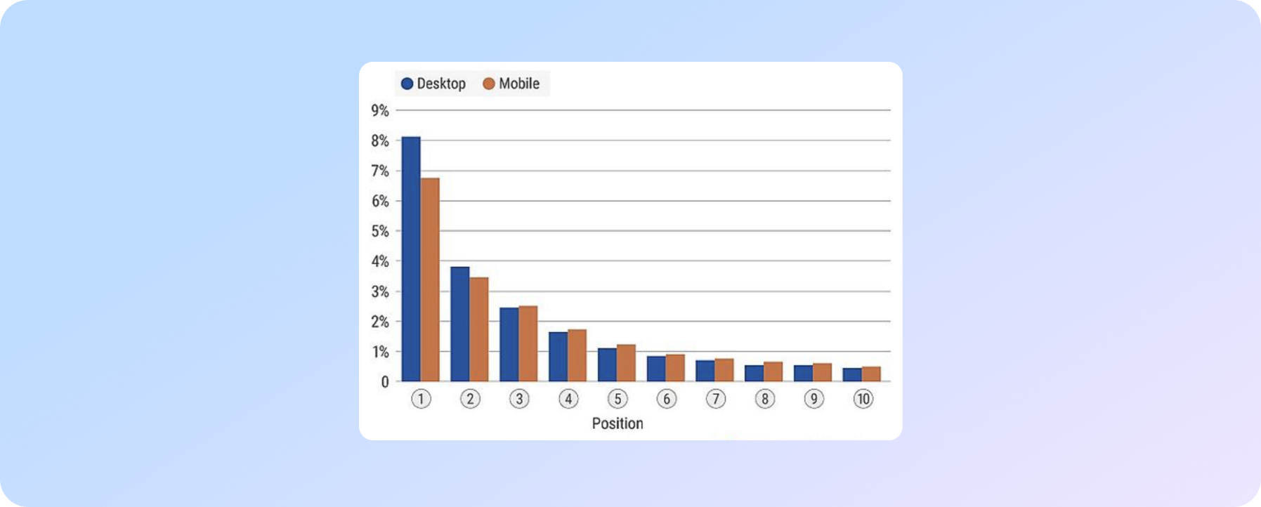 Нижче наведено результати дослідження 2021 року, яке розглядало 17 млрд ключових слів для створення середнього CTR на основі позицій SERP.