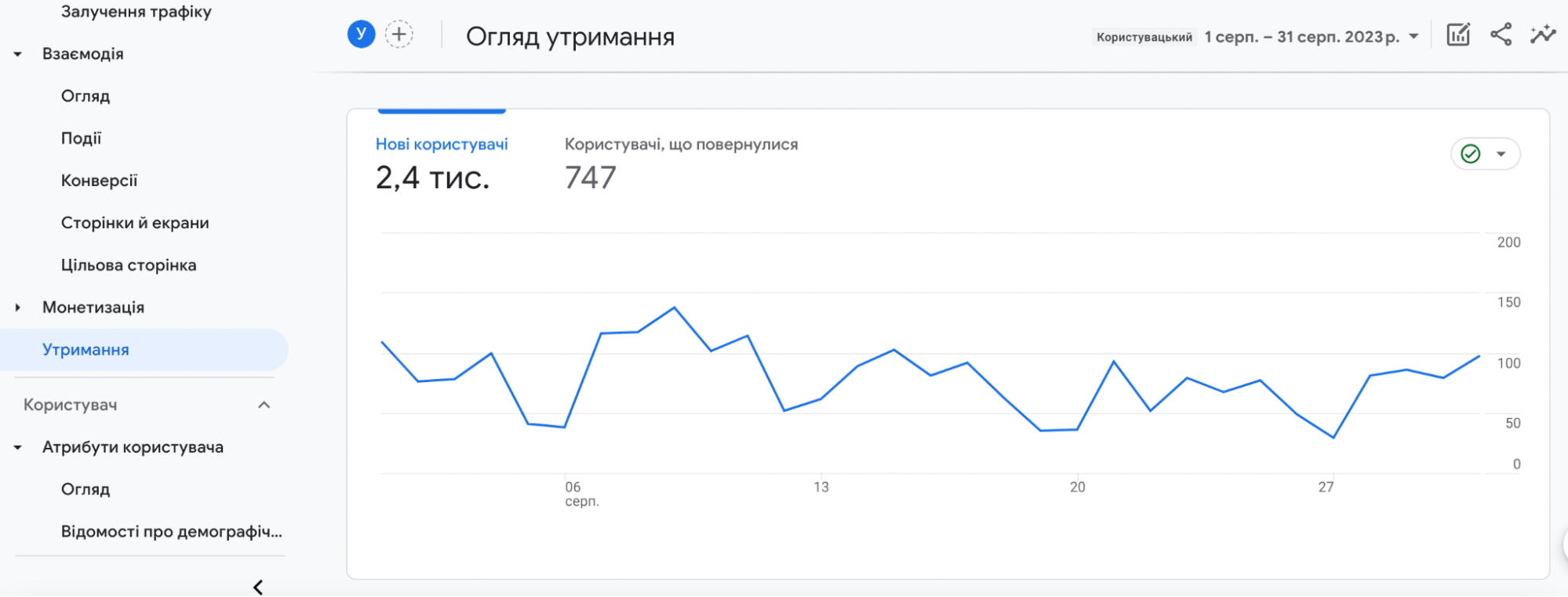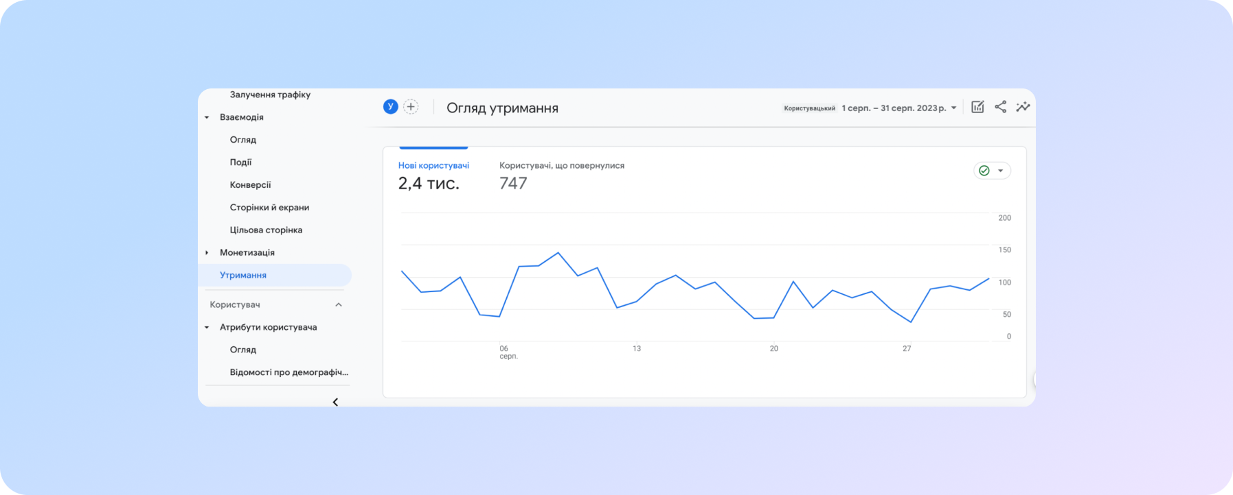 Ви можете окремо проаналізувати дані щодо утримання та залучення користувачів, після чого вжити заходи щодо їхнього збереження та збільшення зацікавленості у вашому контенті або продуктах.