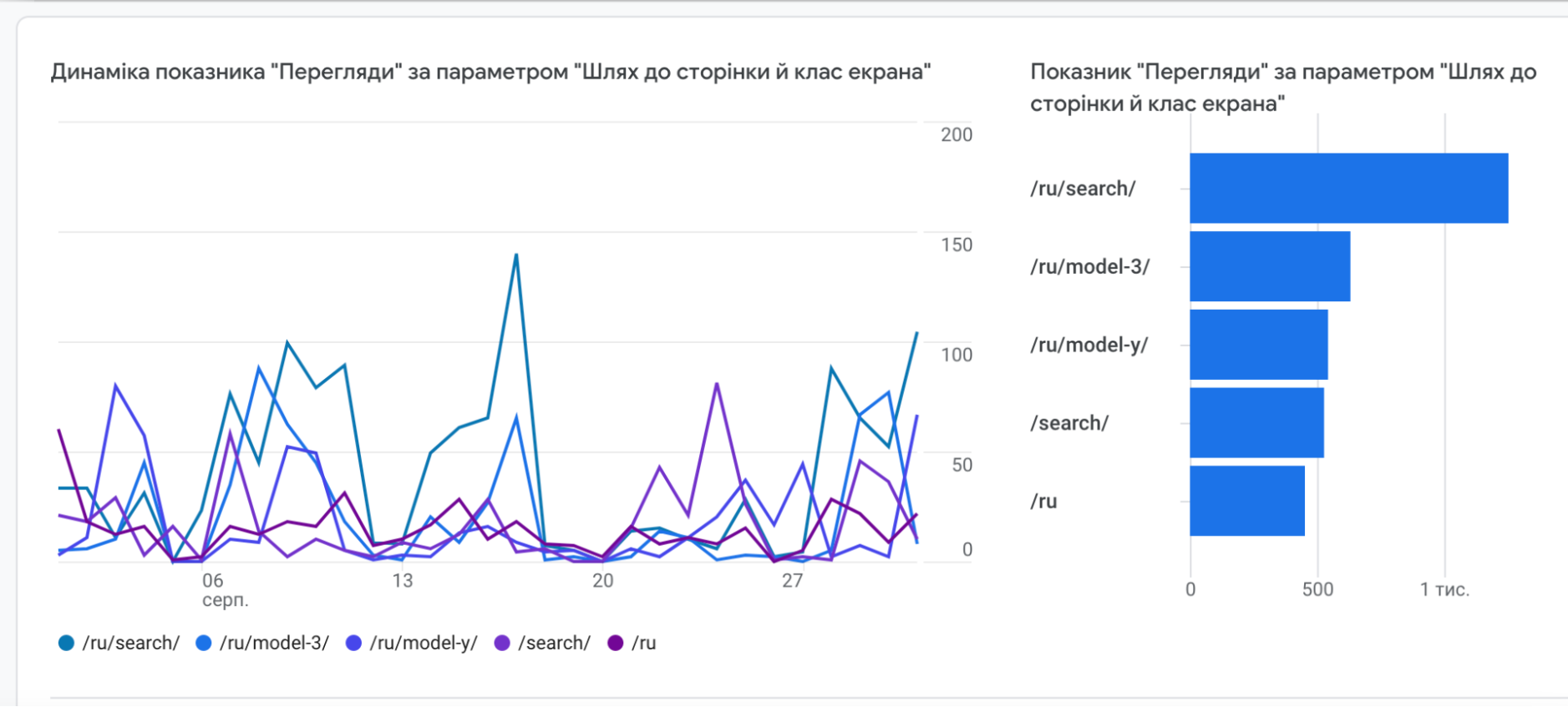 Дашборд показує, які сторінки вашого онлайн-майданчика є найпопулярнішими та найвідвідуванішими. За допомогою цього звіту можна виявити, який контент не цікавить користувачів, і покращити його.