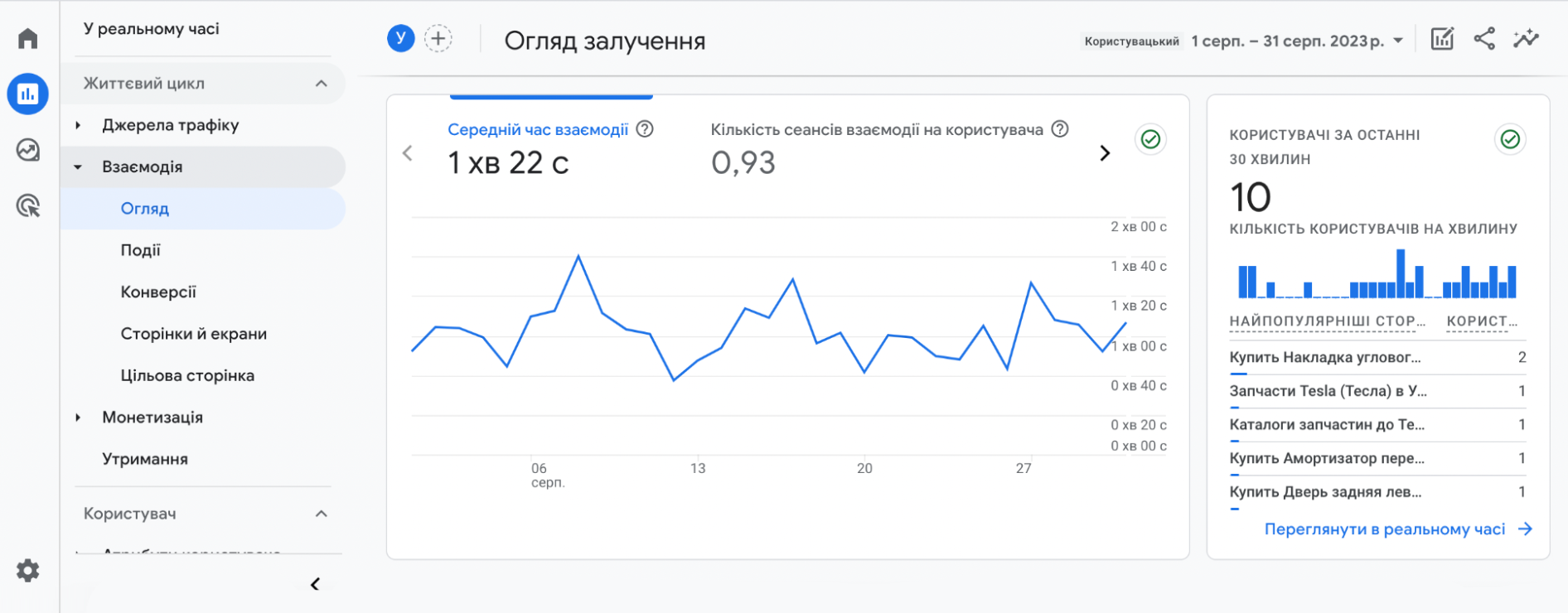 Детальну інформацію про те, як користувачі взаємодіють з вашим сайтом, можна подивитися в однойменному звіті. Розповімо про це докладніше