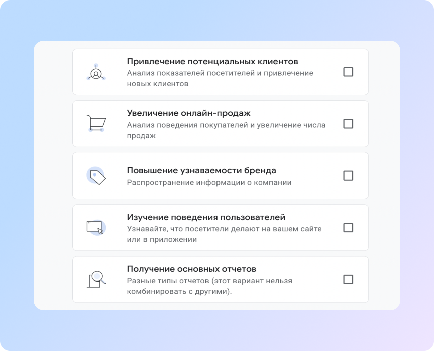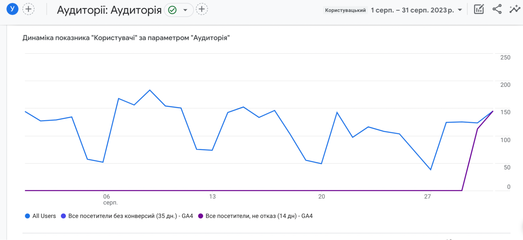 Звіт збирає дані про відвідувачів за замовчуванням, а також про характеристики та поведінку представників вказаних вами сегментів ЦА. Як варіант, це може бути інформація про людей старше 14 років, що не зробили конверсійну дію.