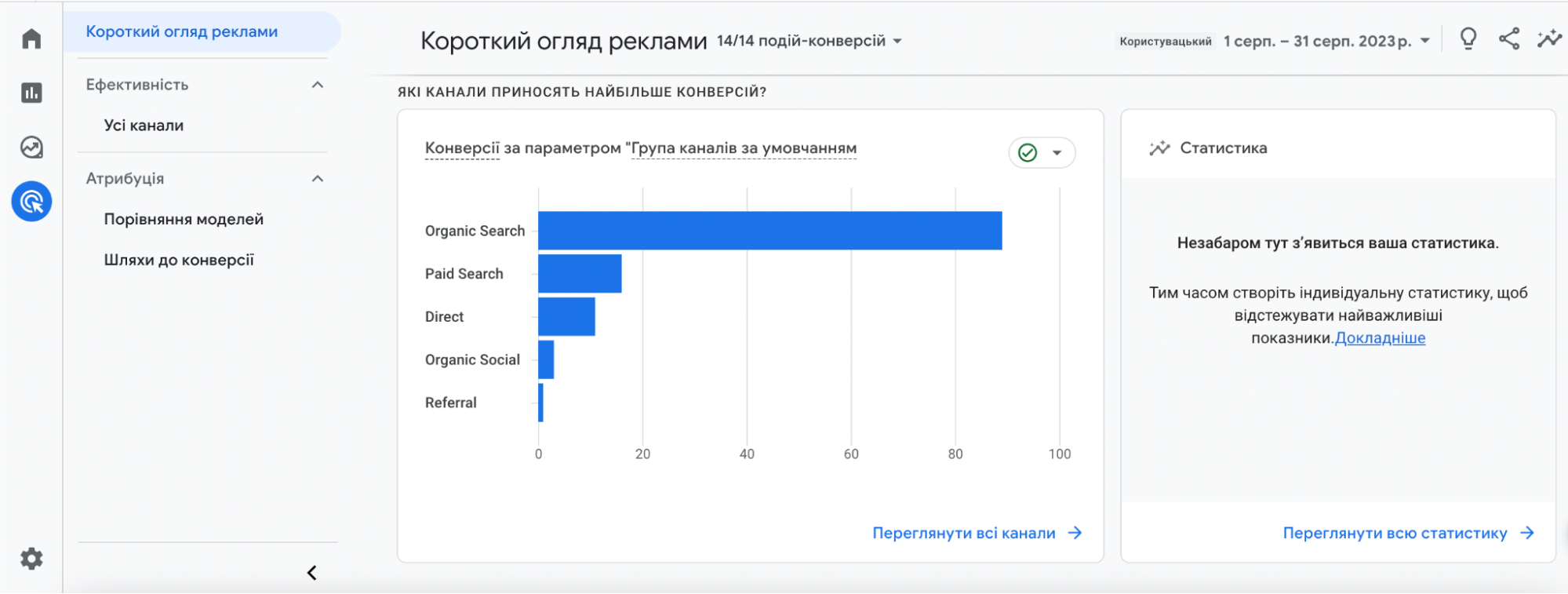 У цьому звіті надається детальна інформація щодо каналів, з яких приходять відвідувачі.
