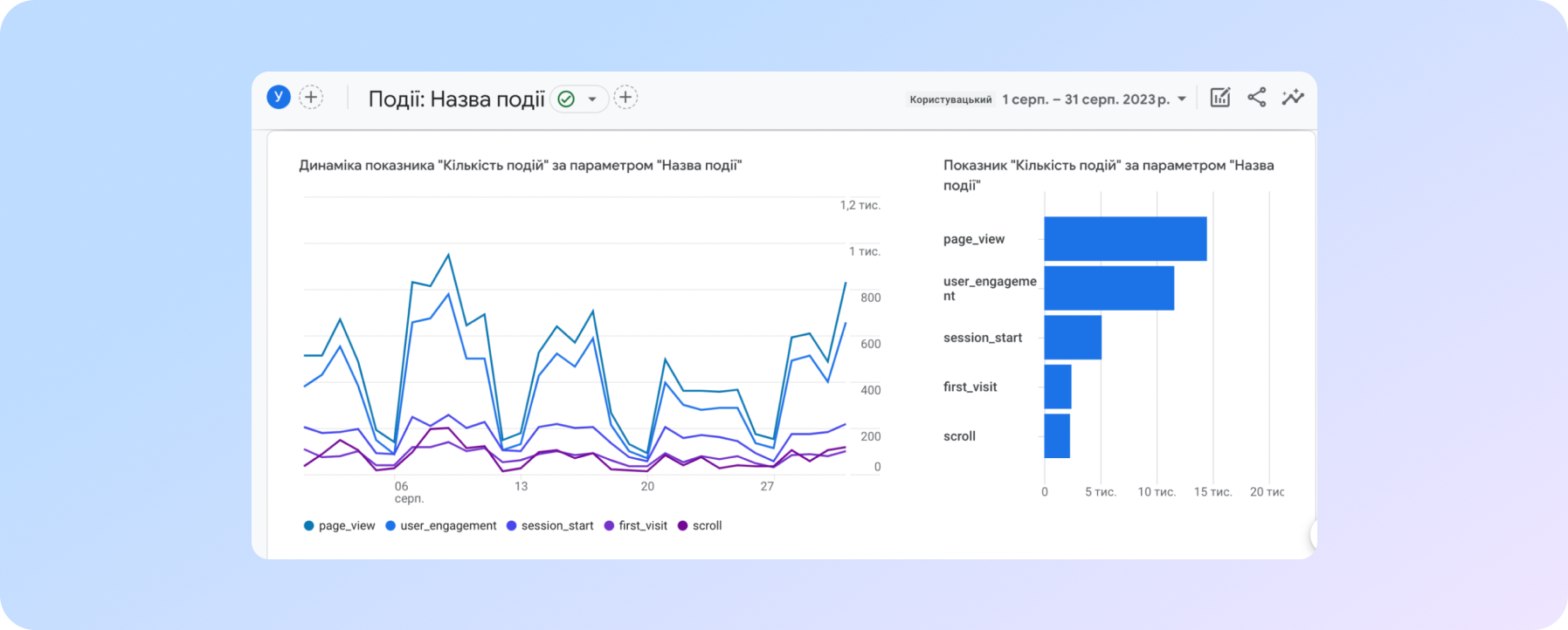 Звіт «Події» допомагає проаналізувати процес взаємодії людей з вашим сайтом і розміщеним на ньому контентом.