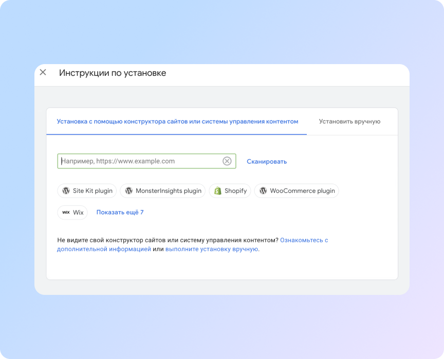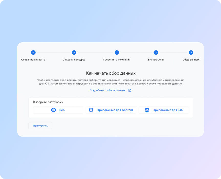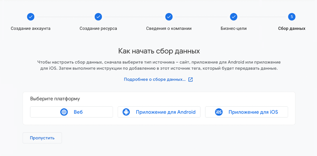 - оберіть платформу (вебсайт, Android або iOS-застосунок) і вкажіть URL-адресу;