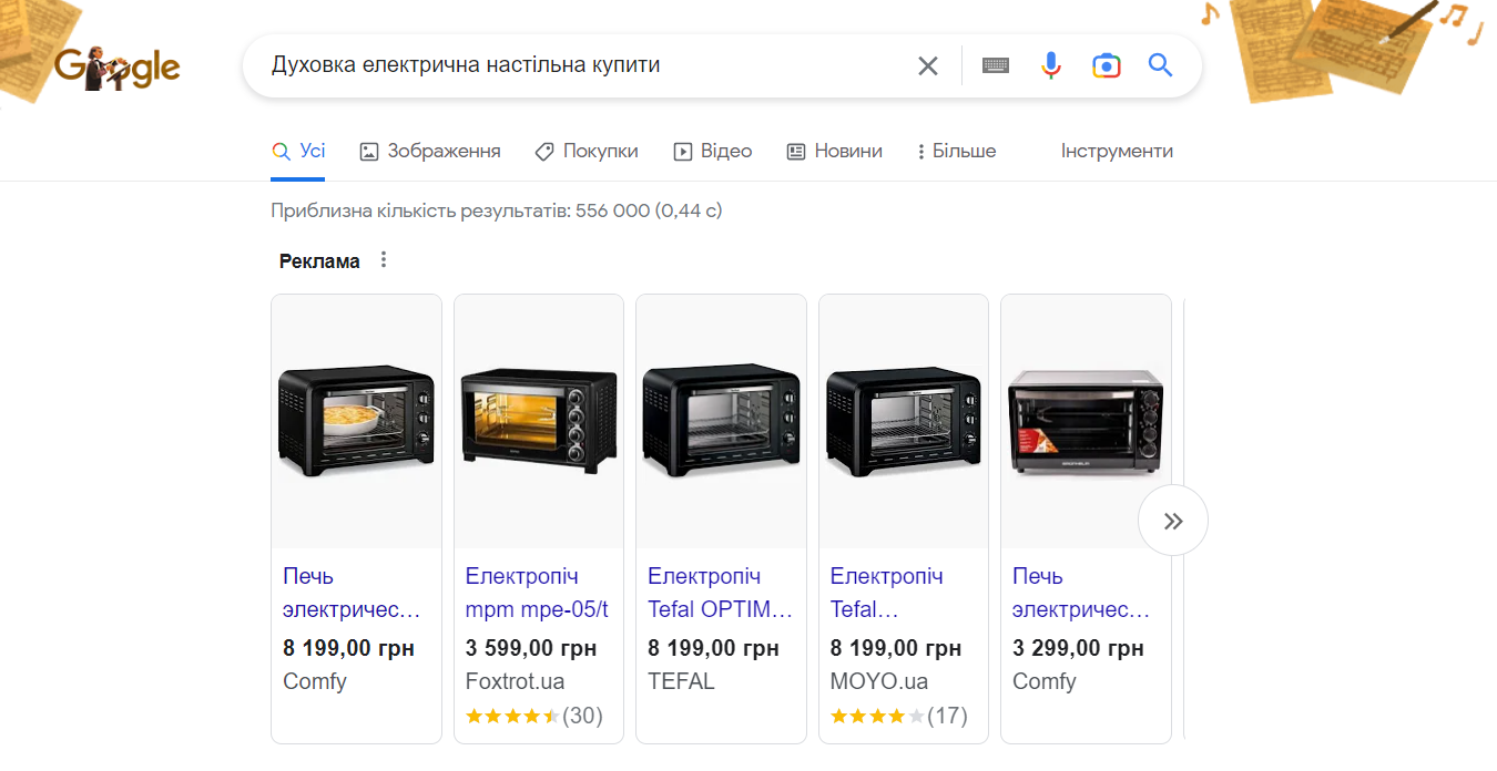 Приклад результатів видачі контекстної реклами в пошуку Google