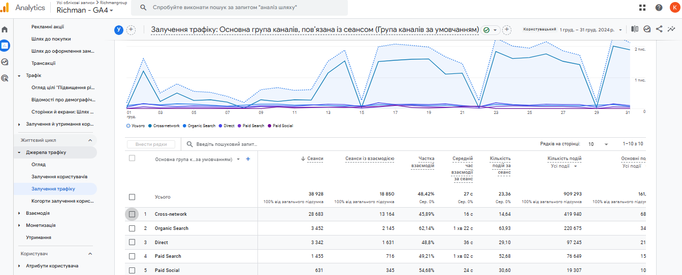 Щоправда, суттєве збільшення трафіку досягли саме завдяки контекстній рекламі, зокрема PM. Це чітко видно під час порівняння показників за різний період.